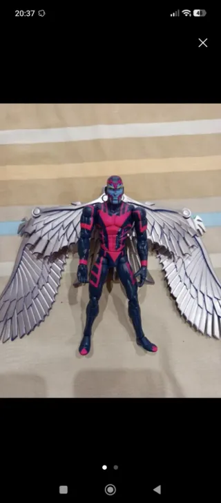Lote de figuras de acción con alas metálicas. - Figura con traje azul y rosa. - Alas plateadas detalladas.