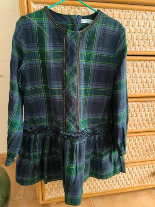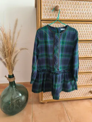 Vestido de Mayoral con cuadros en tonos verde y azul marino, detalle de volante en el bajo. Es de Mayoral y de la talla 6 años.