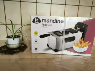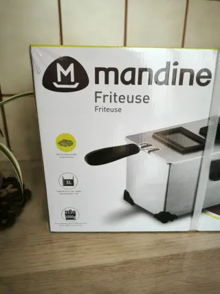 Freidora de aceite Mandine con capacidad de 3 litros. Perfecta para preparar tus fritos favoritos. Si estrenar, con su precinto original. - Diseño compacto y moderno. - Fácil de usar y limpiar. - Indicador luminoso de encendido.