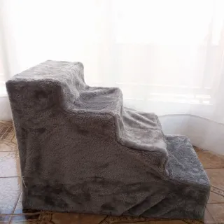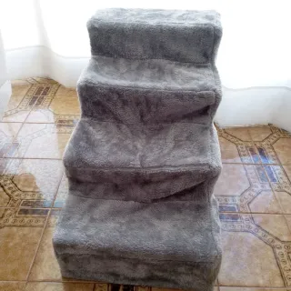 Escalera gris para perros. Ayuda a tu mascota a subir a lugares altos y le ayudará también para la prevención de artrosis. - Material suave y cómodo. - Diseño de cuatro peldaños.