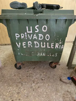 Contenedor de gran capacidad con ruedas. - Material resistente. - Color verde. - Ideal para uso privado o frutería.