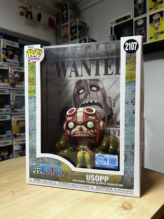 Figura Funko Pop de Usopp, número 2107, de la serie One Piece. - Figura de vinilo. - Diseño inspirado en el personaje de anime. - Caja con diseño Wanted.
