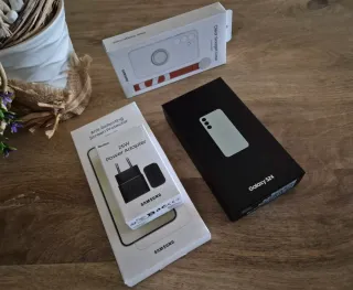 Samsung S24 de 256Gb y 6,2" de pantalla, color gris claro. Capacidad de batería 100%. Con muy poco uso menos de un mes y muy bien cuidado, impecable, con garantía y factura de compra de finales de Septiembre 2025.