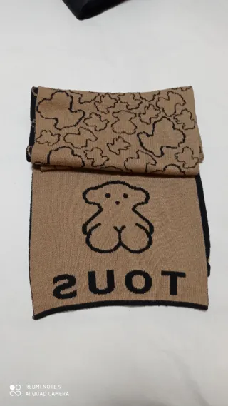 Bufanda Tous con diseño de osos y el nombre de la marca. - Tejido de punto. - Motivos de osos. - Nombre TOUS visible.reversible. y bastante larga para dar 2 vueltas