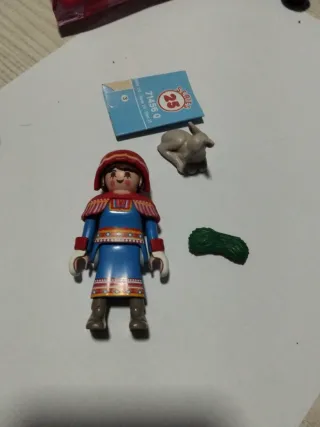 Figura de Playmobil de una chica con su vestimenta tradicional y accesorios. - Incluye figura de chica. - Accesorios: conejo y arbusto. - Tarjeta de serie 25.