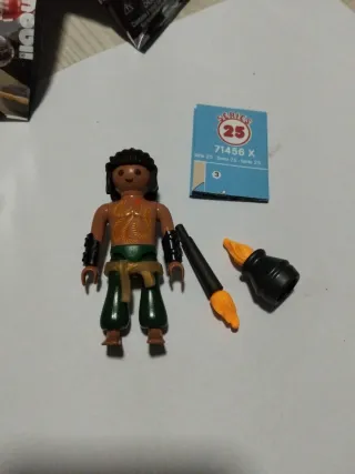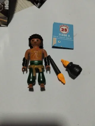 Figura de Playmobil de la Serie 25, con un diseño inspirado en un guerrero. - Incluye accesorios como tocado y arma. - Detalles en el traje y adornos en las piernas y tobillos.