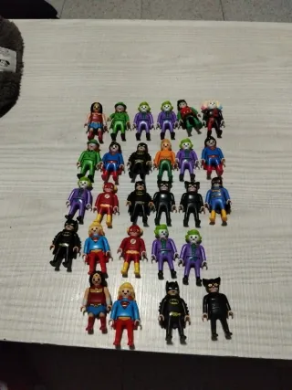 Lote de figuras Playmobil de superhéroes. - Figuras variadas de personajes conocidos. - Ideal para coleccionistas y fans.