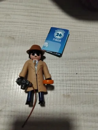 Figura de Playmobil de la serie 26. - Incluye figura con abrigo, sombrero y gafas de sol. - Accesorios: cámara y un aro naranja.