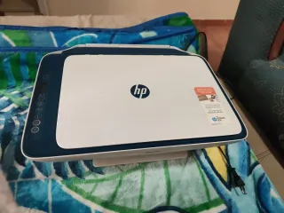 Impresora multifunción HP en blanco y azul. Ideal para el hogar o la oficina. - Diseño moderno y compacto. - Panel de control intuitivo. Imprime, escanea y fotocopia.