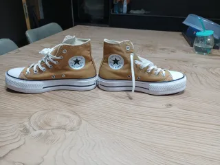Zapatillas Converse All Star con plataforma. - Diseño de caña alta. - Cordones blancos. - Suela blanca gruesa.