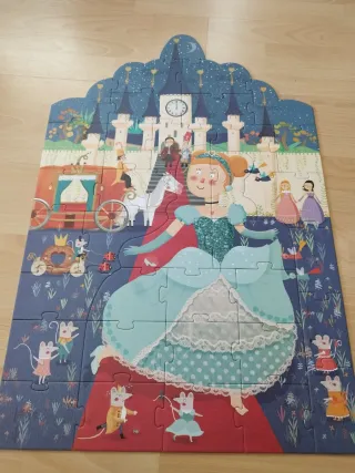 Puzzle infantil de la marca Londji con la temática de Cenicienta. Ideal para los más pequeños. - Ilustración de una princesa y un castillo. - Piezas de cartón. - Diseño colorido y divertido.