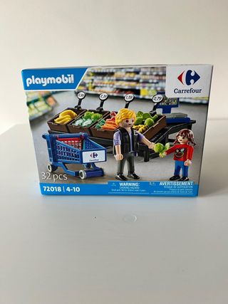 Set de Playmobil del supermercado Carrefour. - Incluye 2 figuras y accesorios. - Contiene 207 piezas. - Recomendado para edades de 4 a 10 años.
