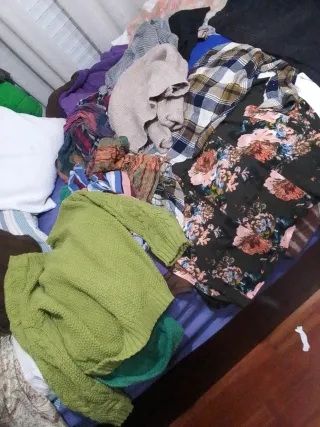 Lote de ropa de segunda mano.de 100 prendas más o menos - Pantalones vaqueros azules. - Pantalones negros. - Camisa de cuadros. Jerseys lana .niño.etc y calzado