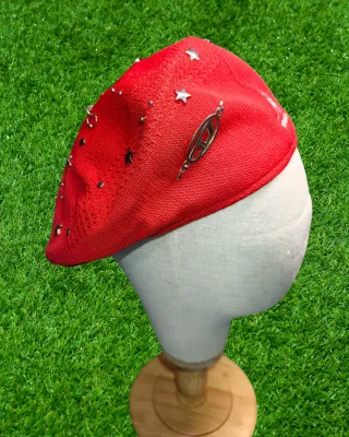 Boina Kangol con un diseño único y detalles personalizados. Sin estrenar, unisex, talla M Punk, hecho a mano. Fito y los Fitipaldis. - Decorada con pequeños pines de estrella y un pin con el logo de Diesel. - Logo de Kangol bordado en la parte frontal.