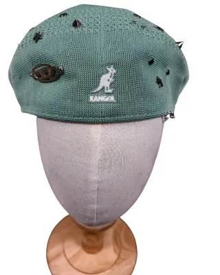 Boina Kangol intervenida con un diseño único. Hecho a mano, unisex. - Detalle de tachuelas metálicas, piercings, pinchos, etc. - Parche metálico lateral de Diesel. - Logo bordado de Kangol. Fito y los Fitipaldis