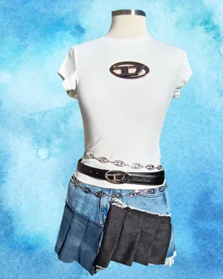 Boina de estilo rework con un diseño único. Talla M. Unisex. Hecho a mano. - Detalle de tachuelas plateadas, piercings y rosario de corazones. - Adorno metálico en forma de 'D' de Diesel. - Tejido de malla transpirable.