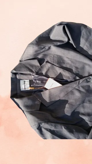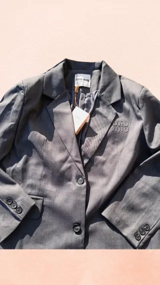 Elegante blazer de Miu Miu en color gris. Una prenda clásica y versátil. Sin estrenar cpn etiquetas, perfecta para regalar. N00p0 R3333alL - Diseño de solapa. - Cierre de un botón. - Bolsillos frontales. - Puños con botones.