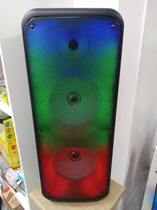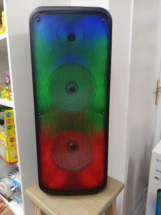 Altavoz Bluetooth con luces LED vibrantes que cambian de color. Tamaño,63cm alto,22cm de fondo,26cm ancho - Diseño moderno y llamativo. - Ideal para fiestas y eventos.