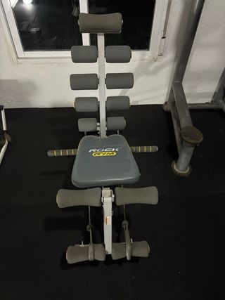 Banco para ejercicios abdominales de la marca Rock Gym. Ideal para tonificar el core. - Estructura metálica. - Acolchado para mayor comodidad. - Ruedas para facilitar el movimiento.