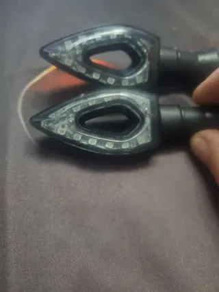 Par de intermitentes LED para moto con diseño angular. - Diseño moderno y aerodinámico. - Iluminación LED brillante. - Carcasa resistente.