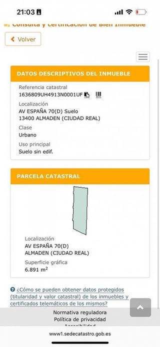 �️ Solar Urbano en Venta - Almadén (Ciudad Real) � Ubicación privilegiada: Avenida de España nº 70, en pleno centro de Almadén (Ciudad Real), localidad reconocida por su patrimonio histórico y sus famosas minas. � Superficie: • Superficie total: 12.200 m² (según Registro de la Propiedad). • Superficie urbana: 6.891 m² (según Catastro). • Resto: terreno no urbanizado, con potencial de regularización o uso complementario. ⚖️ Clasificación y uso: • Suelo urbano. • Uso principal: residencial y comercial. • Ideal para la construcción de viviendas unifamiliares, bloques residenciales, locales comerciales o un proyecto mixto. � Datos registrales: • Finca registral: nº 4045 del Registro de la Propiedad de Almadén. • Código finca registral: 13002000074689. • Referencia catastral: 1636809UH4913N0001UF. ✨ Puntos destacados: • Solar céntrico, de gran visibilidad y fácil acceso. • Ubicación estratégica en una de las avenidas principales del municipio. • Oportunidad única para promotores que quieran desarrollar un proyecto de impacto en el corazón de Almadén. • Se estudia colaboración con constructoras para el desarrollo de chalets, promociones residenciales o locales comerciales. � Precio de venta: 99.000 €.