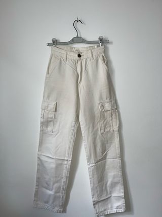 Pantalón de estilo cargo en color beige. Diseño moderno y funcional. - Bolsillos laterales de gran capacidad. - Cintura con trabillas para cinturón. - Cierre de botón y cremallera.