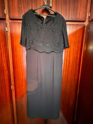 Vestido de vestir con un diseño sofisticado y detalles de bordado. - Manga corta. - Escote cuadrado. - Adorno de bordado floral en la parte superior. - Largo hasta la rodilla. - hecho a medida, equivale a una 48