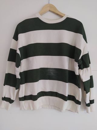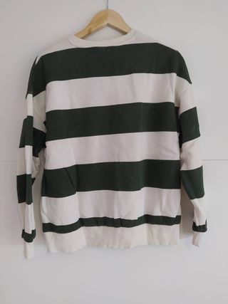 Sudadera Rayas Verde y Blanca Pull&Bear Talla S