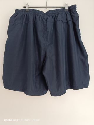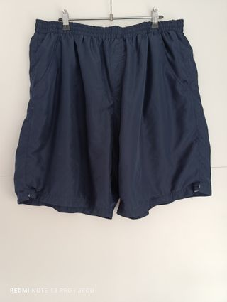 Bañador tipo short de hombre marca Crivit. Color azul marino liso. Incluye forro interior de rejilla blanca. Cintura elástica con cordón. Talla: L. Estado: Buen estado. Básico para piscina o playa. REF 98