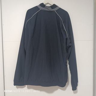 Chaqueta deportiva tipo cortavientos con cremallera de la marca Domyos. Color azul marino con detalles reflectantes en los hombros. Talla: XXXL / 3XL (Contorno pecho 128-134 cm según etiqueta). Ideal para tallas grandes. Tiene forro interior de malla transpirable. Tejido ligero y cómodo para entrenar o uso diario. Estado: Buen estado. REF 99