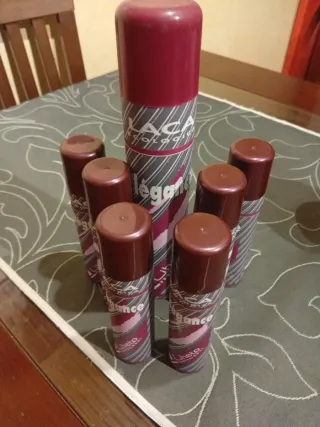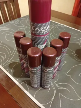 Lote de siete lacas en spray, con un atractivo color morado. - Laca Ecológica. - Envase en spray.