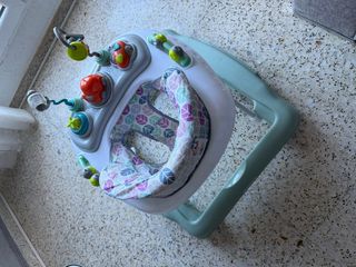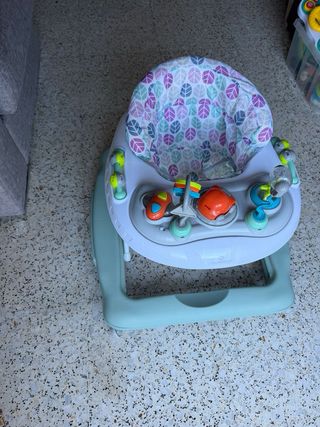 Andador para bebés con varios juguetes interactivos para estimular el desarrollo. - Asiento acolchado. - Estructura de plástico resistente. - Juguetes de colores. - Ruedas giratorias.