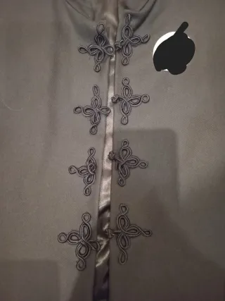 Chaquetilla de traje manchego con detalles de pasamanería. - Cierre con botones de pasamanería. - Diseño tradicional. Talla de unos 12 años, cosida a mano nada de industrial. Usada dos veces en las fiestas de mayo de Almansa