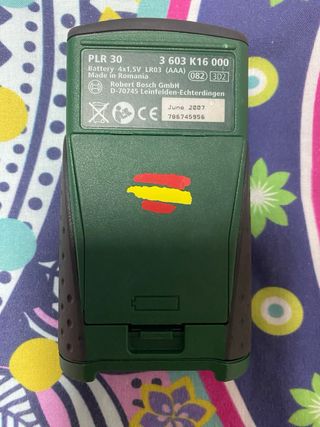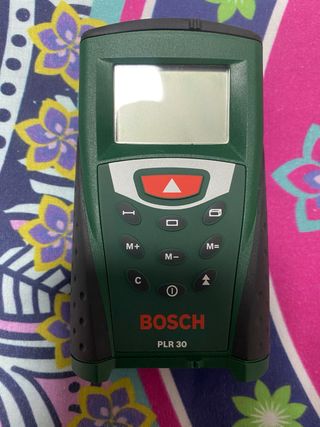 Medidor láser de la marca Bosch, modelo PLR 30. - Diseño compacto y ergonómico. - Pantalla digital para mediciones. - Botones de control para diferentes funciones. - Mide distancia, area y volumen El producto esta en buen estado, usado muy pocas veces, tiene un problema en la pantalla como se puede apreciar en las imagenes y es que algunos de los digitos se atenua la intensidad en estos, y cuesta algo apreciar el digito que es, pero se puede ver. No se el motivo por el cual le pasa eso, pero aseguro que no es por ningun golpe ni nada similar, el uso que a tenido es particular como bricolaje casero y en muy pocas veces.