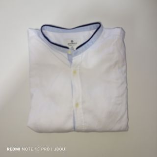 Camisa de manga larga de hombre de la marca Springfield. Color blanco con detalle interior del cuello en azul. Diseño con Cuello Mao (o cuello tira), estilo casual/ibicenco. Talla XL (42 MEX / USA). Corte "Urban Daily", muy cómoda. Estado: Buen estado general. Se entrega lavada y planchada. Un básico elegante pero informal. REF 101