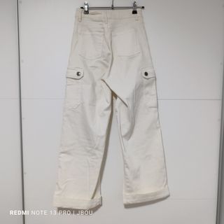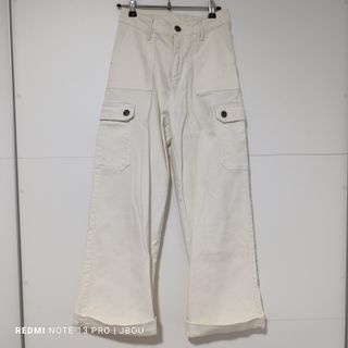 Pantalones vaqueros estilo Cargo color blanco crema / crudo de la marca Pull&Bear. Diseño de tiro alto con bolsillos laterales con solapa. Corte de pierna ancha (Wide Leg) muy actual. Talla: 32 (Corresponde a una XXS o talla juvenil muy pequeña). Material: Denim de algodón resistente (no transparenta). Estado: Buen estado. Ideales para chicas petite o talla juvenil. REF 102