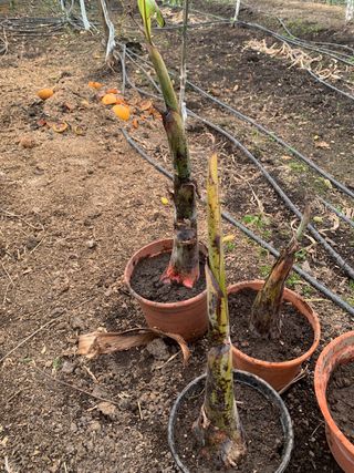 Planta de plátano en crecimiento. - Frutos verdes. - Hojas verdes.