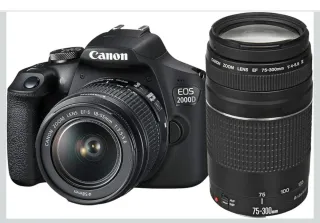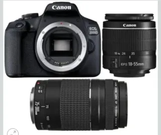 Se vende cámara réflex digital Canon EOS 2000D con dos lentes. - Lente Canon Zoom EF-S 18-55mm 1:3.5-5.6. - Lente Canon Zoom EF 75-300mm 1:4-5.6 II. -Sensor CMOS APS-C de 24,1 megapíxeles. -Conectividad Wi-Fi y NFC para compartir y controlar a distancia. Pantalla LCD de 3 pulgadas no táctil. Grabación de vídeo Full HD (1080p) a 30, 25 o 24 fps. -El objetivo zoom EF 75-300 mm f/4-5,6 III cubre numerosas longitudes focales de teleobjetivo de uso frecuente y ofrece imágenes de gran calidad. Este objetivo es un complemento compacto y asequible para cualquier cámara EOS