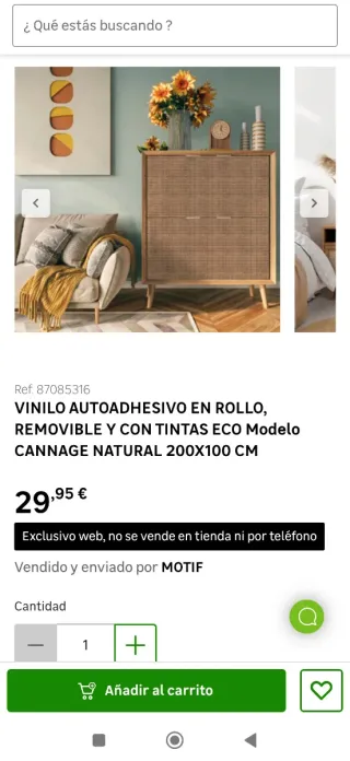 45€ los 2. Vinilo autoadhesivo con un diseño inspirado en el cannage natural. Es removible y cuenta con tintas eco. - Modelo: Cannage Natural. - Medidas: 200x100 cm.