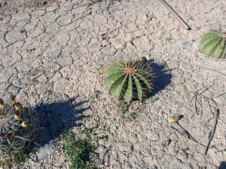 Cactus Ferocactus pilosus con espinas rojas. - Espinas de color rojo intenso. - Forma globular característica.