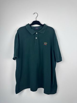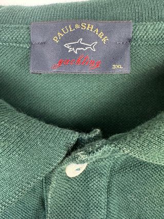 Polo de manga corta de la marca Paul & Shark en color verde. Un clásico para tu armario. - Logo de la marca bordado en el pecho. - Cuello tipo polo con botones. - Tejido de algodón. Marca: Paul & Shark Yachting (Original) Color: Verde Bosque / Verde Oscuro Talla: 3XL (Corte clásico/holgado) Bordado Premium: Logotipo clásico de tiburón en el pecho con relieve y colores vibrantes (amarillo, blanco y rojo). Calidad de fabricación: Tejido de algodón piqué grueso, muy resistente y transpirable. Botones grabados: Botones originales con el nombre de la marca grabado a láser. Estado: En buenas condiciones vintage. Sin manchas, roturas