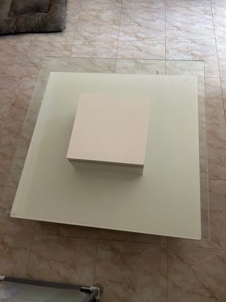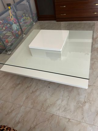 Mesa de centro cristal y blanco
