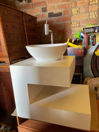 Mueble de baño con lavabo y grifo
