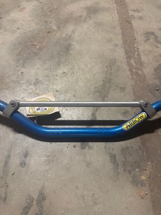 Manillar de motocross de la marca Arrow. Diseñado para un estilo de conducción deportivo. - Fabricado en aluminio resistente. - Color azul vibrante. - Incluye barra de refuerzo central.