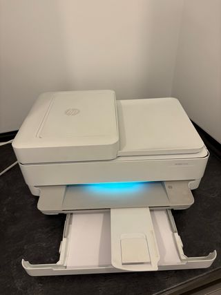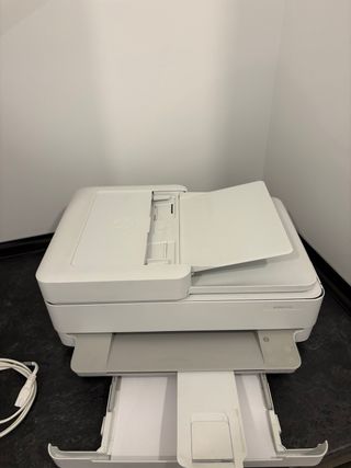 Impresora multifunción HP con conectividad WiFi y función de escáner. Está como nueva casi ni la he utilizado. - Modelo: HP 6430e - Color: Blanco - Conectividad: WiFi Importante( NO tiene tinta, los cartuchos están vacios, los pongo para saber cuales son) Tampoco tengo la caja original de embalaje. Precio de venta en tienda 221€