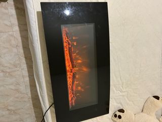 Chimenea eléctrica con un diseño moderno y elegante, ideal para añadir un toque acogedor a cualquier espacio. - Marco exterior de color negro. - Panel frontal de cristal. - Efecto de llama multicolor. - medidas 1 metro ancho por 50 cm alto