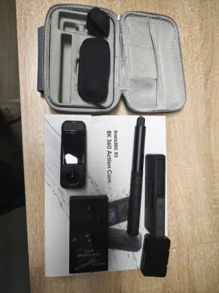 Cámara de acción Insta360 X5 8K. - Incluye estuche de transporte. - Incluye palo selfie. - Incluye manual de usuario - Dos baterías - protector de lentes - incluyo pinza para manillar original Insta Usada un par de veces. Como nueva