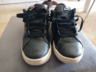 Zapatillas deportivas Nike en buen estado. - Diseño clásico en blanco y negro. - Cordones blancos. - Logo de Nike en la lengüeta y el lateral.