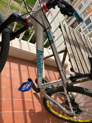Cuadro de bicicleta Mondraker Play. - Color plateado. - Diseño robusto.