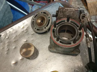Conjunto de culata, pistón y cilindro para moto Husqvarna 125 de 2 tiempos. - Cilindro. - Pistón. - Culata.